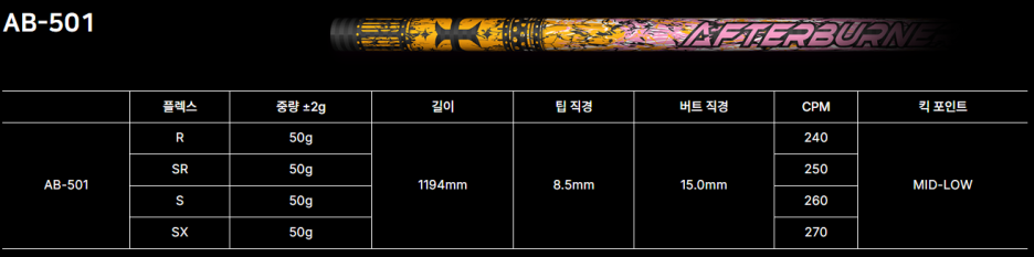 비거리 효과를 보시려면 TRPX 에프터버너 AB503 모델을 강력하게 추천드립니다.