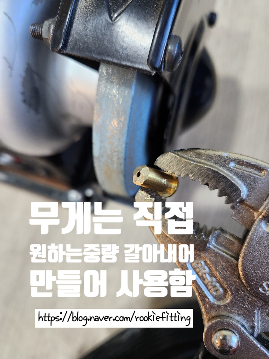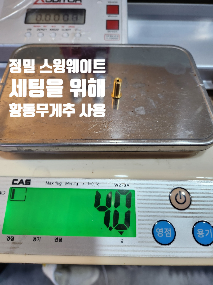 위 사진들 처럼 밀도가 높은 황동 무게추를 가지고 제가 원하는 무게를 직접 갈아내거나, 커팅해서